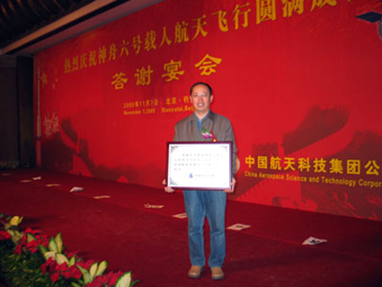 2005年,中國航天科技集團為感謝銀利電器為我國神舟六號載人航天飛行任務飛船和運載火箭研制配套中作出的貢獻,邀請公司董事長焦海波先生參加慶祝“神舟六號載人航天飛船飛行圓滿成功”答謝宴會,并頒發榮譽證書。