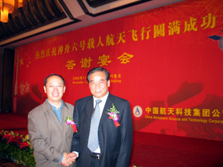 公司董事長(左)與神州五號總指揮黃春平(右)合影